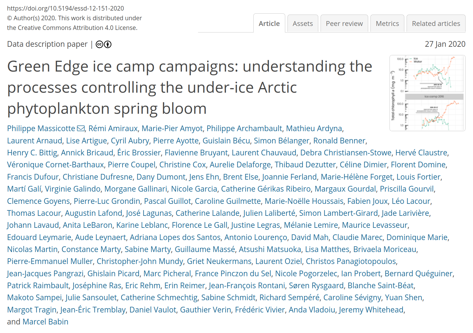 - 2 camps de glace (2015-2016) et 1 mission océanographique sur le brise-glace Amundsen (2016)